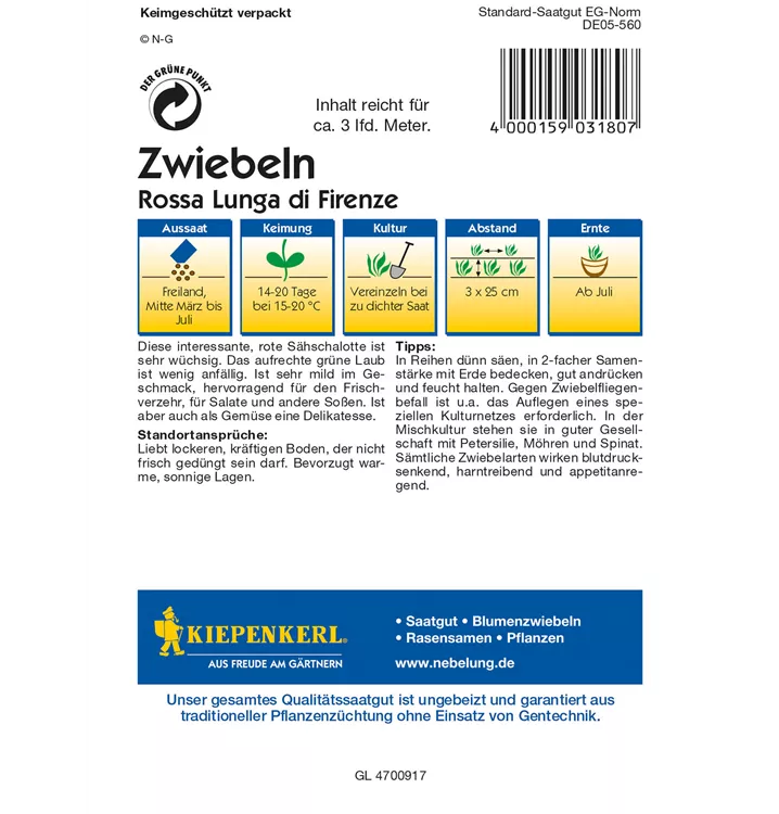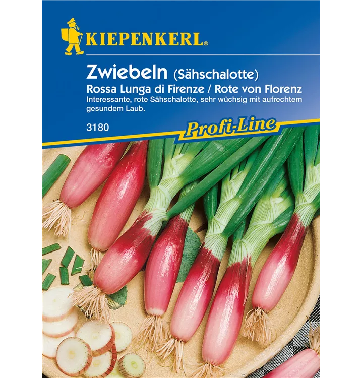 Die Frühlingszwiebel 'Rossa lunga di Firenze' (Allium cepa) bildet Zwiebeln, die würzig schmecken und bereits ab Mai geerntet werden können. Für das optimale Wachstum der Frühlingszwiebel 'Rossa lunga di Firenze' werden ein sonniger Standort und durchlässiger, nährstoffreicher Boden benötigt.