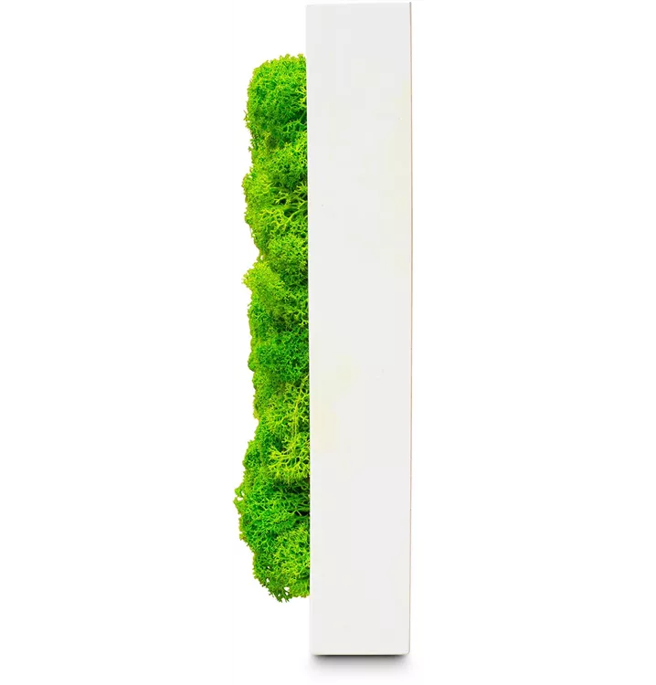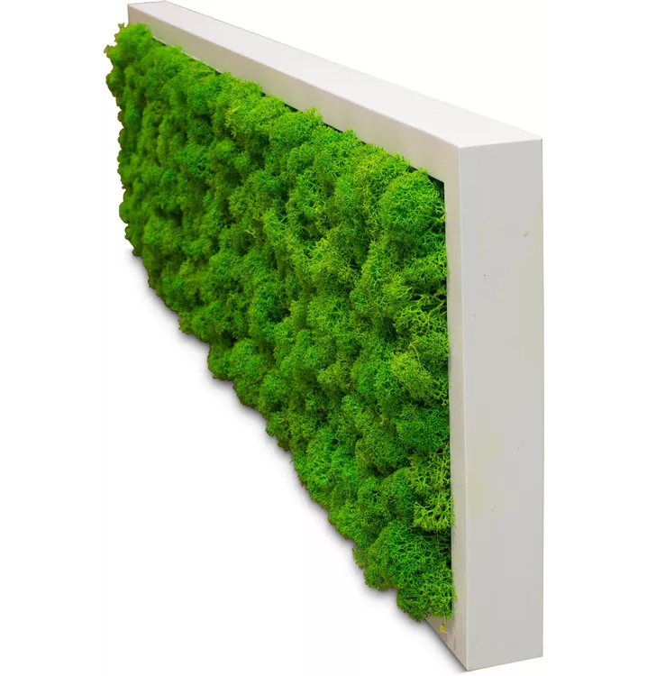 Um den Charakter und die Haptik dauerhaft wieder zu spiegeln wird das Moos mit einer einzigartigen, natürlichen Präparation bearbeitet. Somit bleib es auf ewig weich und behält sämtliche aus dem Wald kommende Eigenschaften. Die hierzu verwendeten Farben sind lichtecht sowie kosmetisch. Zudem schützt die Präparation das Moos vor Sonneneinstrahlung, welche der Langlebigkeit der Pflanze zugutekommt. Wir gewähren Ihnen aus diesem Grund eine Farbgarantie für 5 Jahre. Es wirkt feuchtigkeitsregulierend und positiv auf das allgemeine Wohlbefinden.